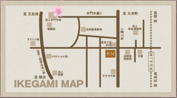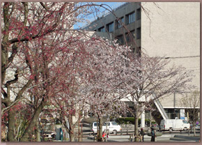 JR京浜東北線、東急大井町線、そしてりんかい線の各大井町駅から徒歩約7分程の距離にある大井本店。お店の向かいには品川区役所、横には区民の憩いの場である「中央公園」があります。桜の木の数は少ないのですが、それでも優雅に咲いている桜を楽しむことができます。 |