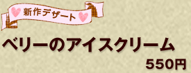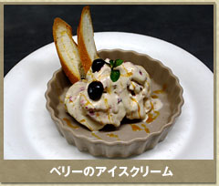 | 自家製バニラアイスクリームにストロベリーとブルーベリーを混ぜ込みました。バニラの甘みとベリーの酸味が程よく合います。 |
