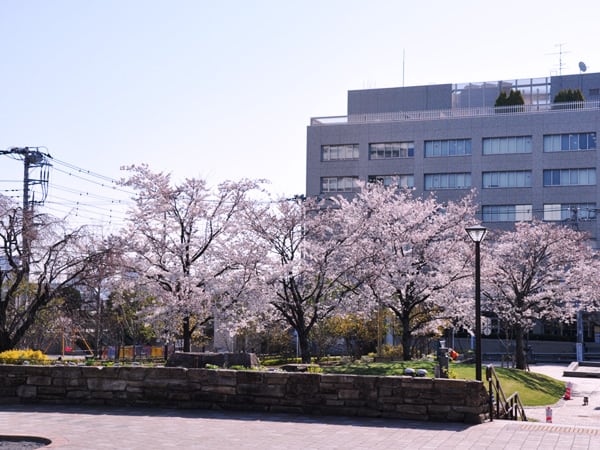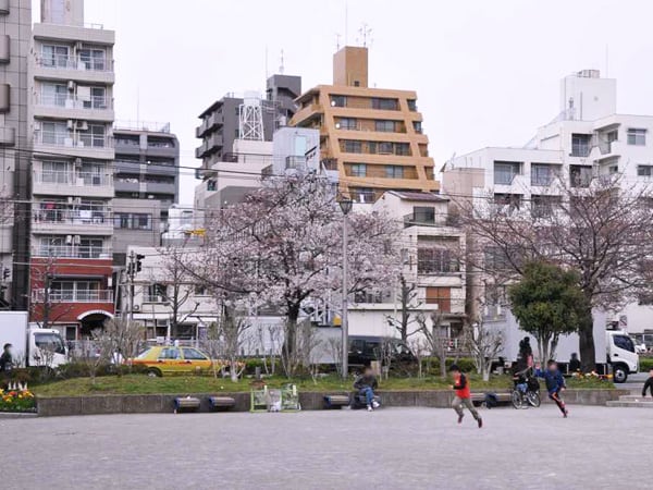 真向かいには品川区役所、そしてすぐ近くには「しながわ中央公園」があります。しながわ中央公園には本数は少ないのですが、桜の木が植樹されており品川区民の憩いの場となっています。