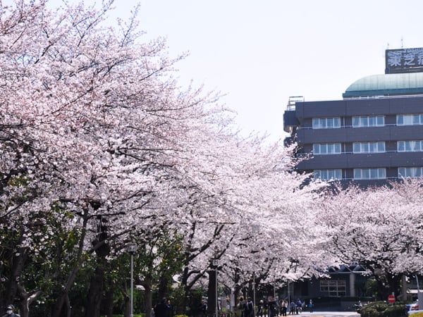 その近くには東芝病院があり、病院へ向かう道に桜の木が植えられています。
