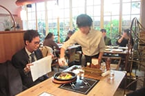 二人の生徒には私たちB&M151Aスタッフが普段行っている作業(ご来店されるお客様をお出迎えをし、料理の提供、空いた食器を下げる、退席されるお客様のお見送り等)をして頂きました。