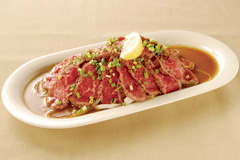 店内焼き上げ自家製ローストビーフを食べやすくカットし、特製のドレッシングをかけた一品です。