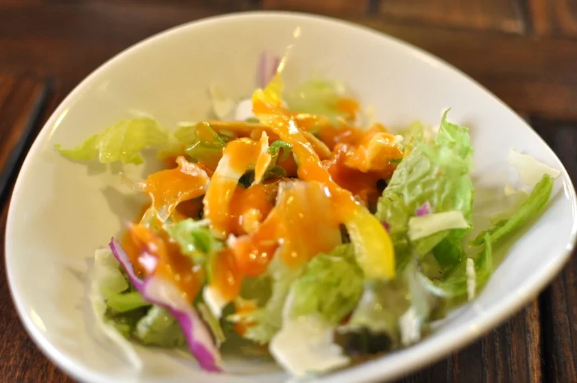 たまねぎ、きゅうり、トマト等々サイコロ状にカットした野菜を特製ドレッシングで和えた創業時から愛されているオリジナルサラダです。